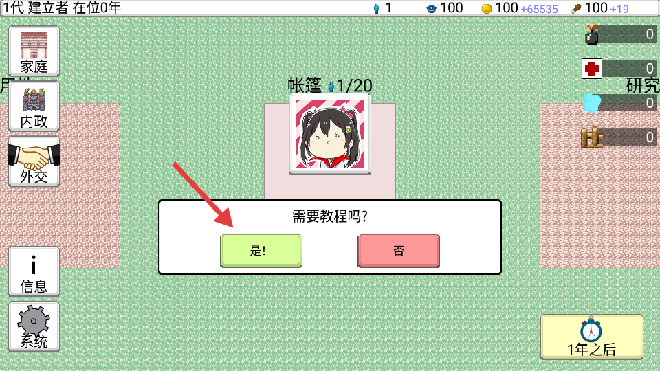 少帶點后宮,人口不要膨脹太快。注意暴力和隨機的屬性,那是家門不幸的根源,無論孩子還是大人全都流放掉。前期會賺前的最重要,后期升科技的最重要。最后一關(guān)炸彈至少五級,人至少600血可以過。