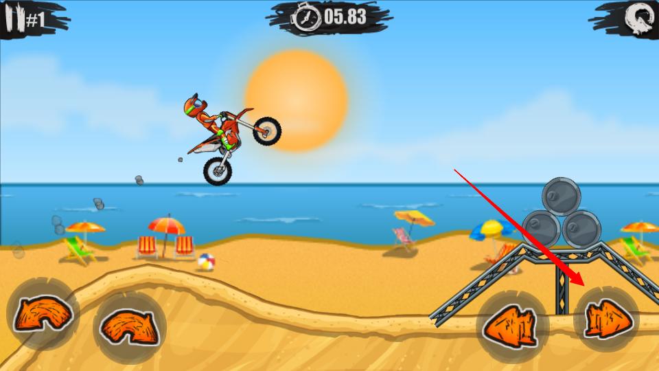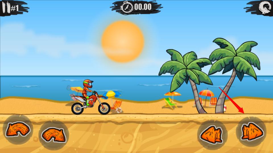 1、玩家需操控摩托車在橫版關(guān)卡中加速或剎車保持平衡穿越帶刺冰塊和齒輪等障礙。