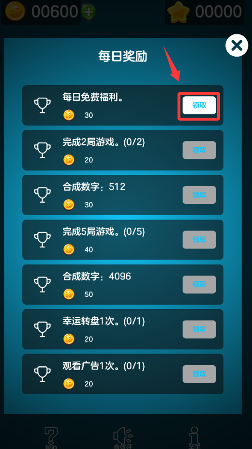 3、進(jìn)入游戲會彈出每日獎勵點(diǎn)擊領(lǐng)取獎勵。