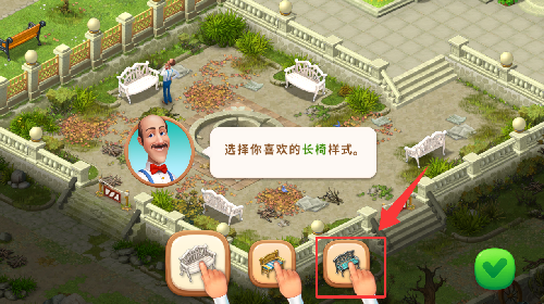 2、根據(jù)你自己的喜愛喜歡那個長椅就點擊打√。
