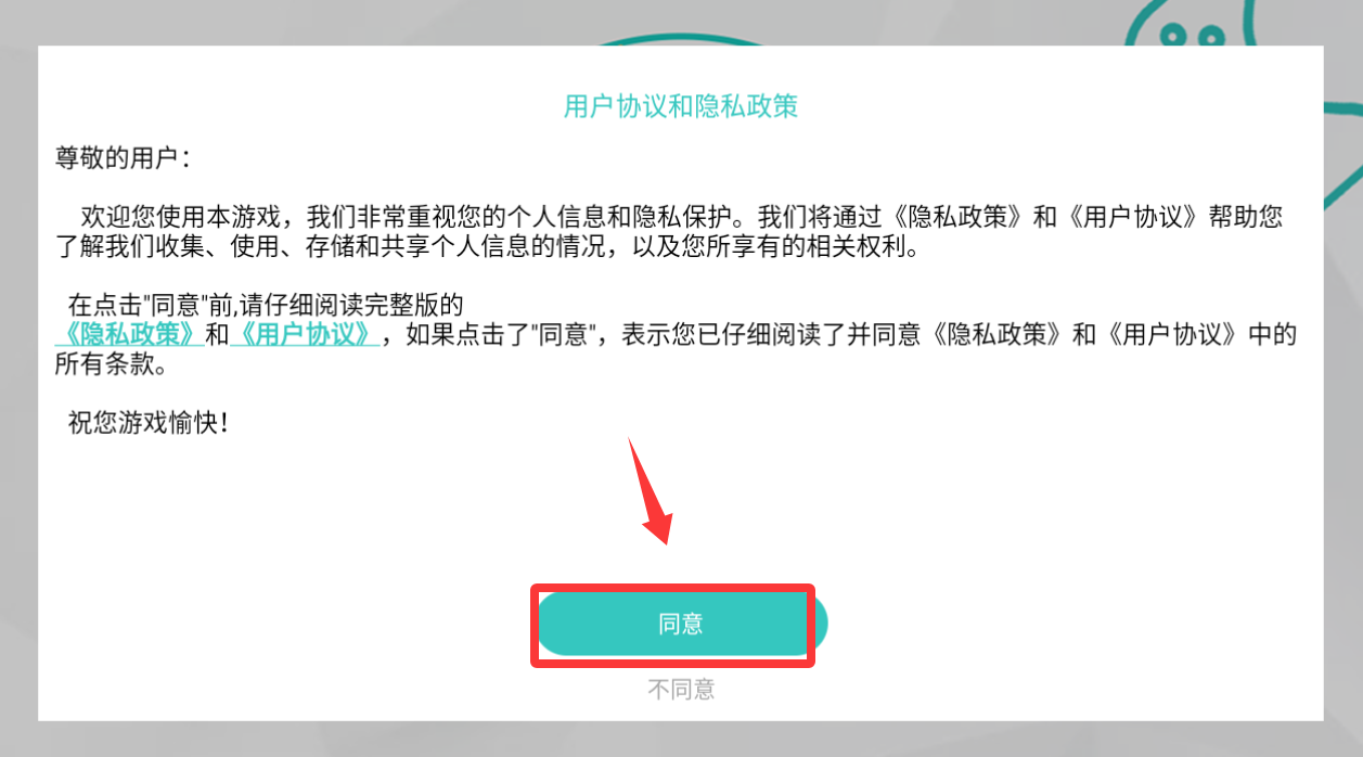 1、點(diǎn)擊用戶協(xié)議和隱私政策里的同意并進(jìn)入。