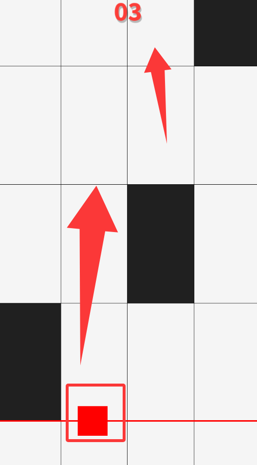 2、注意正方形那個(gè)不要碰到黑色的格,碰到會(huì)輸。