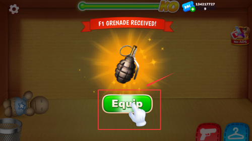3、點(diǎn)擊裝備按鈕,為角色裝備手榴彈。