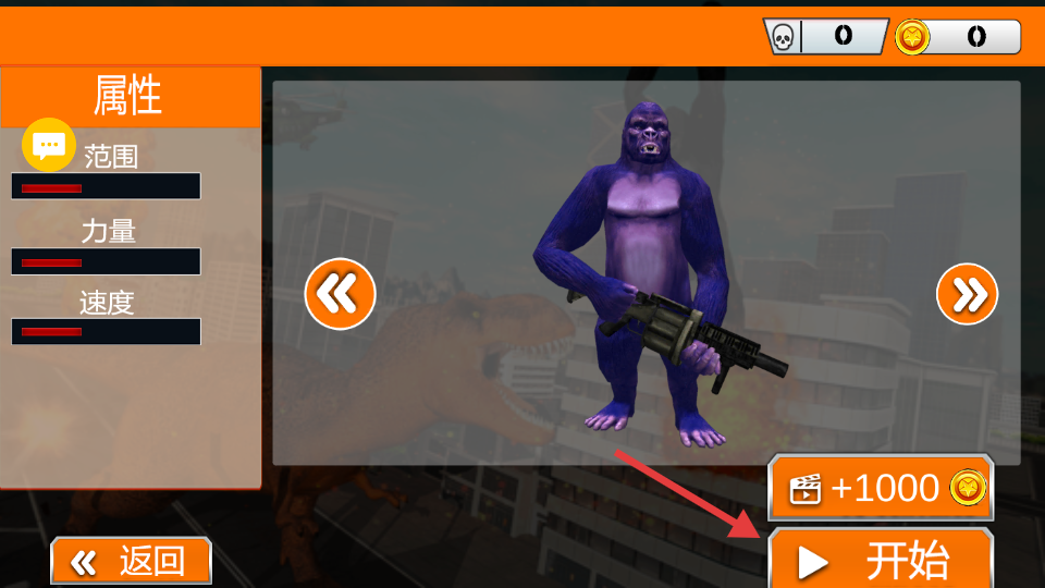 1、玩家可切換金剛或恐龍角色展開(kāi)對(duì)決。