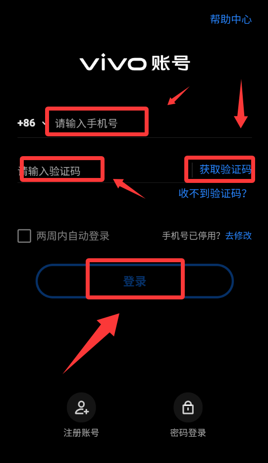 2、輸入手機號碼獲取驗證碼然后輸驗證碼并登錄。