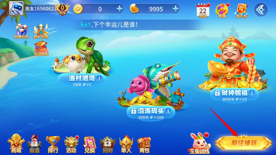 3、每日完成劈魚任務(wù)能解鎖專屬皮膚增強(qiáng)捕魚威力。