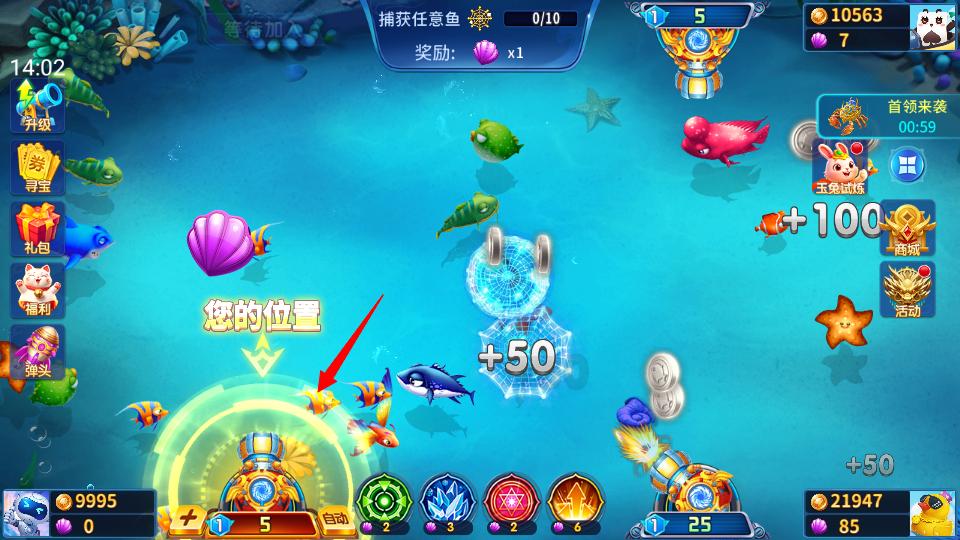 2、擊中特殊黃金魚可觸發(fā)暴擊效果獲得大量金幣獎(jiǎng)勵(lì)。