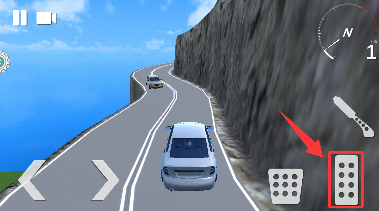 3、進入游戲右下角紅色框框那個是油門,點擊它就能前進。
