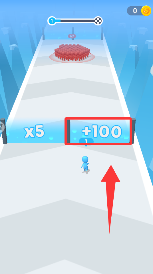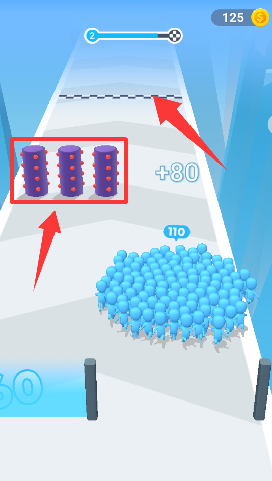 2、注意紅色框框這些障礙物,碰到會減少人數(shù),前面就是終點(diǎn)了走過去。