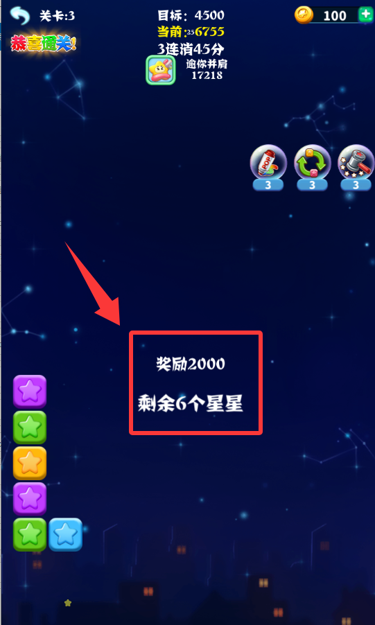 3、剩余6個(gè)星星獎(jiǎng)勵(lì)了2000分。太棒了。