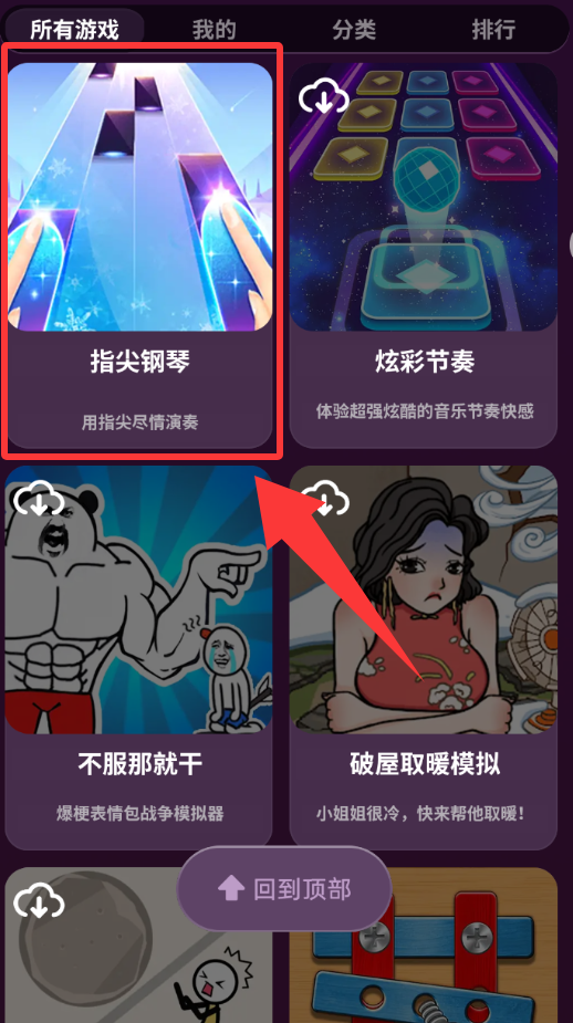 2、進(jìn)入游戲點(diǎn)擊指尖鋼琴并進(jìn)入。