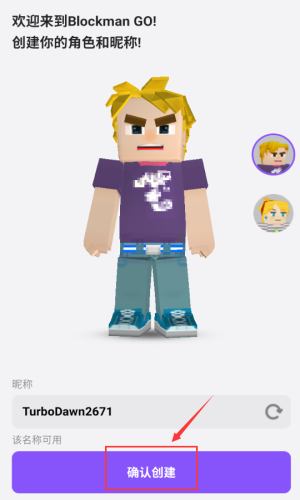 2、輸入角色昵稱,點擊確認(rèn)創(chuàng)建按鈕。