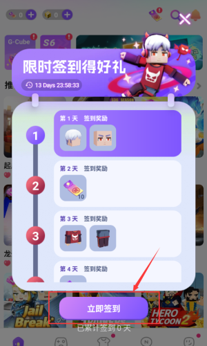 3、點擊立即簽到,領(lǐng)取限時活動獎勵。