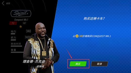 1、點擊綠色購買按鈕,花費一百四十金幣獲得卡車。