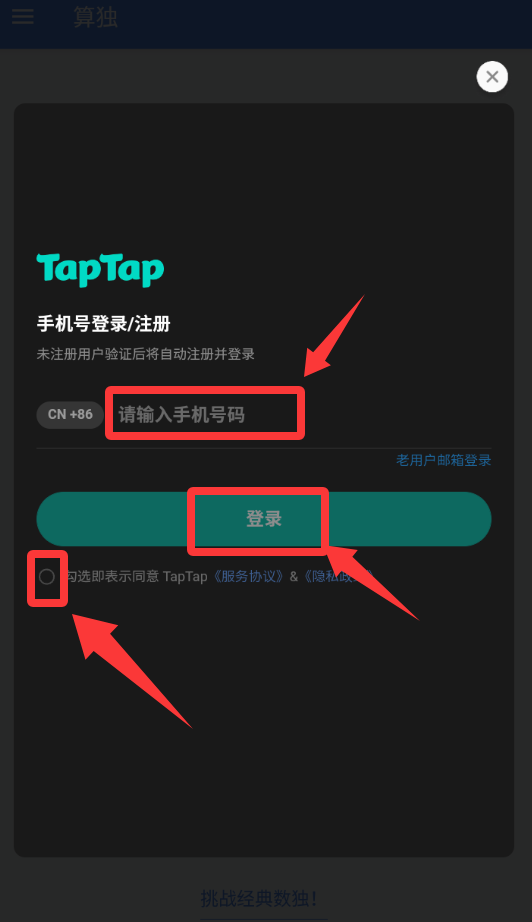 3、先點擊打√然后輸入手機號碼獲取驗證碼并登錄。