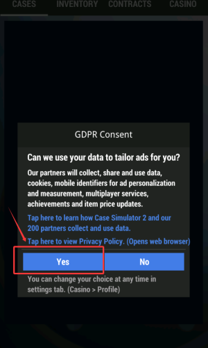 1、點擊同意按鈕,確認(rèn)數(shù)據(jù)使用條款開始游戲。