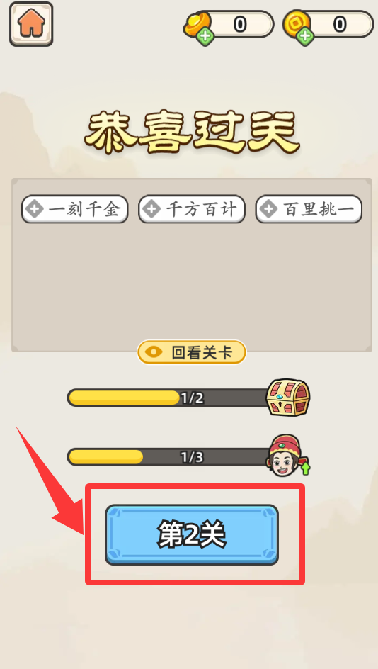 3、恭喜你,過關了,你好棒棒啊,點擊第2關。