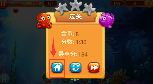 3、恭喜你過關(guān)了,你好棒棒啊,點(diǎn)擊紅色框框哪里回主頁。