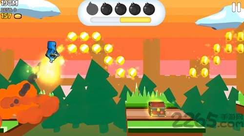 玩家需要通過跳躍、摧毀建筑物與敵人來通過各個區(qū)域,可以說是一往無前。隨著旅途進程的逐步增加,游戲的速度感會從最初的緩慢變得迅速,這也使得游戲中前期會進階到敏捷游戲的范圍。闖關(guān)的方式比較獨特,唯一擁有的手段只有投擲炸彈,而且這位騎士跳躍的手段竟然是利用炸彈把自己炸飛,非常有意思。