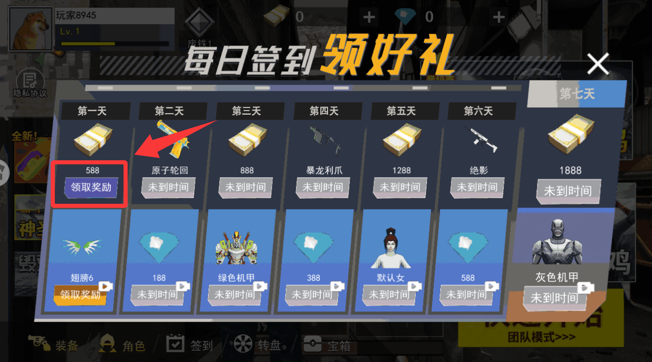 3、進入游戲點擊每日簽到領(lǐng)取每日獎勵。