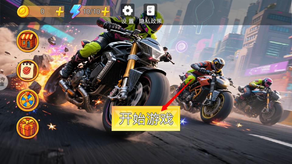 3、硬核駕駛體驗:采用真實物理引擎,摩托車會因地形變化而發(fā)生傾斜,需要精準控制方向完成漂移過彎。
