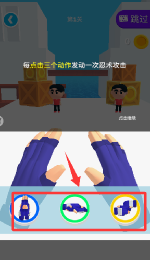 4、每點(diǎn)擊3個(gè)動(dòng)作就會發(fā)起一次忍術(shù)攻擊。