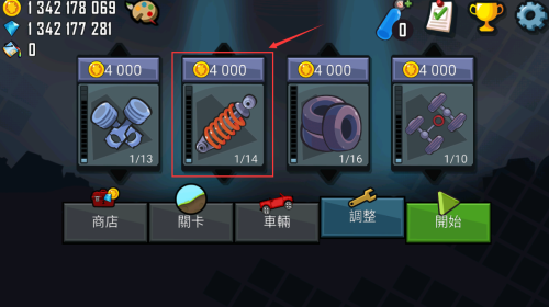 3、選擇彈簧部件,花費金幣升級車輛性能。
