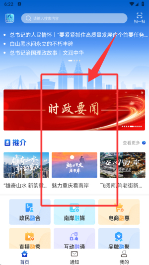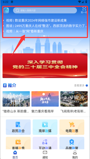 用戶打開掌新南岸app,進(jìn)入新聞資訊,即可查看或搜索南岸資訊。