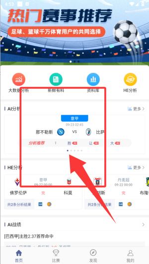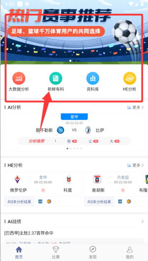 1.新增AI分析和HE分析快捷入口,多維數(shù)據(jù)助力比賽篩選,點(diǎn)擊首頁一鍵到達(dá)