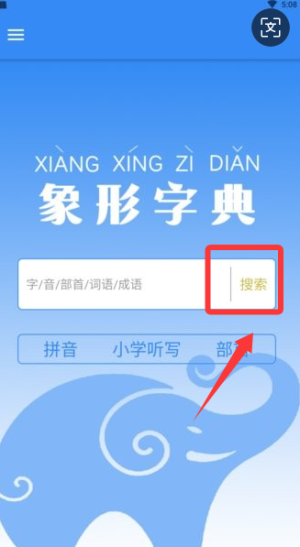 2、在搜索框輸入想查詢的漢字,系統(tǒng)會快速匹配象形字形和釋義,方便學習或研究使用。