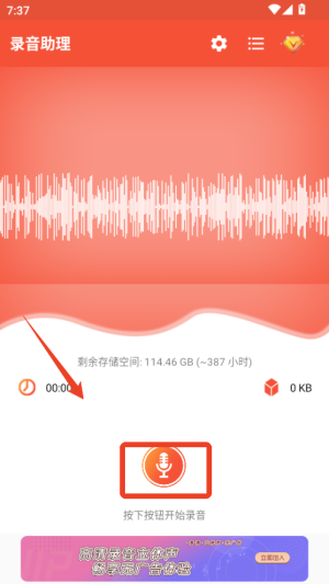 1、下載安裝后打開點點錄音助理,在主頁點擊紅色錄音鍵即可開始錄制,操作簡單直觀。