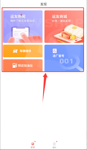 1、登錄運(yùn)友物流APP后,在發(fā)現(xiàn)頁可瀏覽運(yùn)友資訊或查詢周邊加油站等功能。