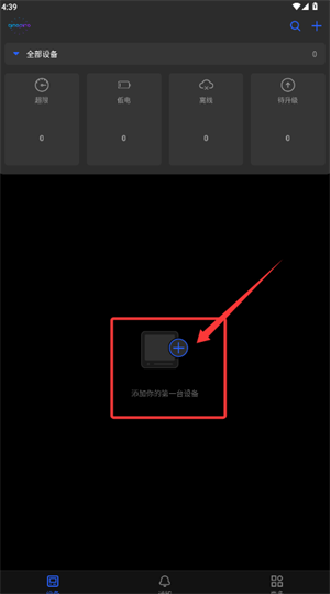 2、注冊成功后前往設(shè)備管理頁,點擊添加首臺設(shè)備處的加號圖標。