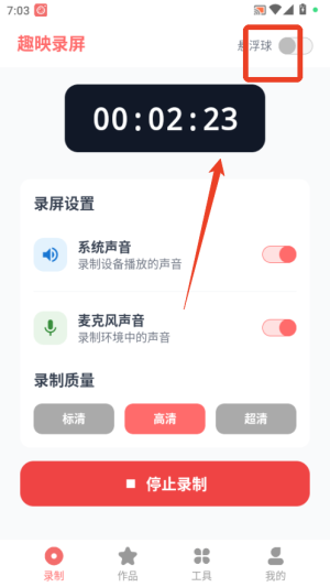 2、一鍵開始并懸浮操控,點擊紅色按鈕即可開始錄制,懸浮窗會顯示狀態(tài),方便你隨時暫停或結(jié)束。