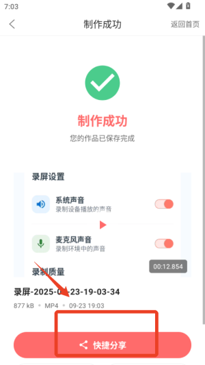 3、查看與分享高清視頻,錄制結(jié)束自動保存到相冊,你可以在軟件內(nèi)預(yù)覽高清效果,并直接分享給好友。