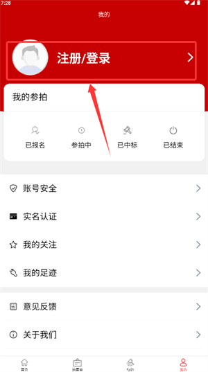 1、啟動(dòng)應(yīng)用后,前往我的頁(yè)面點(diǎn)擊“注冊(cè)或登錄”完成賬戶驗(yàn)證。