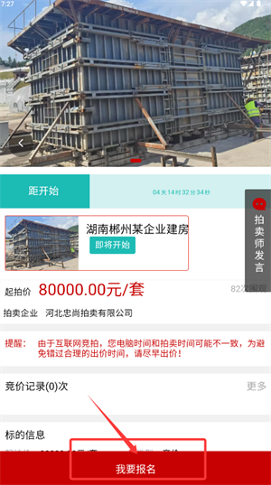 3、選定目標(biāo)藏品后進(jìn)入詳情頁(yè),點(diǎn)擊“立即報(bào)名”參與競(jìng)拍。