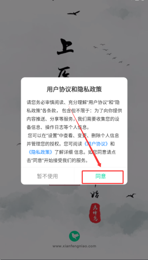 1、確認(rèn)同意用戶協(xié)議后,系統(tǒng)將自動進入應(yīng)用程序主界面,開啟全部功能服務(wù)。