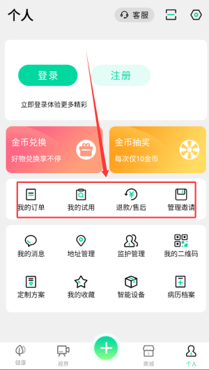 4、個人中心集中展示我的訂單詳情、試用申請記錄以及退款售后等客戶服務(wù)功能。