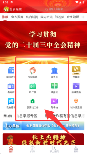 【首頁】看電視、聽廣播、直播金鄉(xiāng)、文明實(shí)踐、隨手拍、壯麗、70年奮斗新時(shí)代、“不忘初心牢記使命”主題教育、創(chuàng)建全國文明城市、直播、短視頻