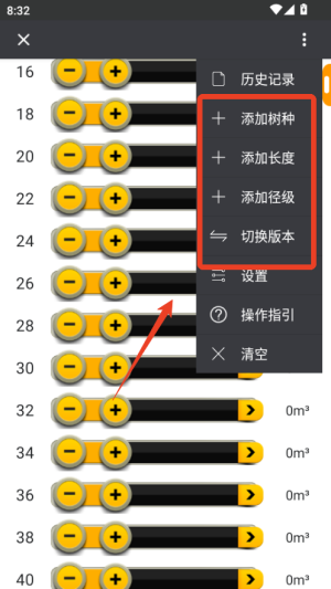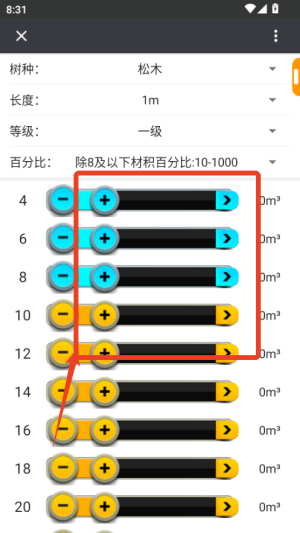 1、首先下載材積計(jì)算器app并打開,在主界面選擇所需的木材類型或計(jì)算模式,如原木或板材。