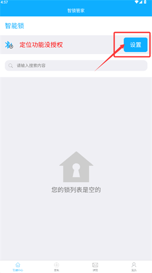 3、在主界面查看定位授權提示,點擊右側“設置”完成權限授予。