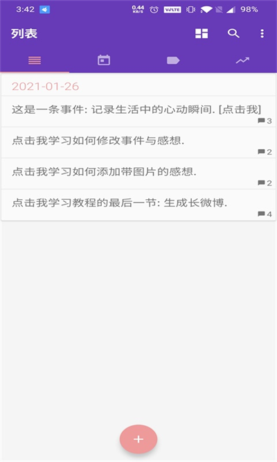 用戶隨時(shí)可以通過軟件來記錄生活中的點(diǎn)點(diǎn)滴滴,而且還可以記錄工作事項(xiàng)