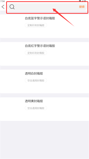 2、在搜索頁面輸入封箱膠關(guān)鍵詞,點(diǎn)擊檢索按鈕查找商品。