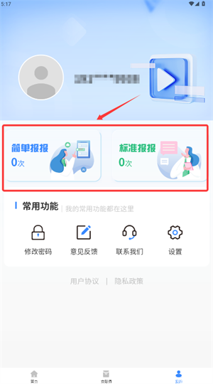 2、成功注冊(cè)后將跳轉(zhuǎn)至個(gè)人中心,可見“簡易上報(bào)”與“標(biāo)準(zhǔn)上報(bào)”等功能入口。