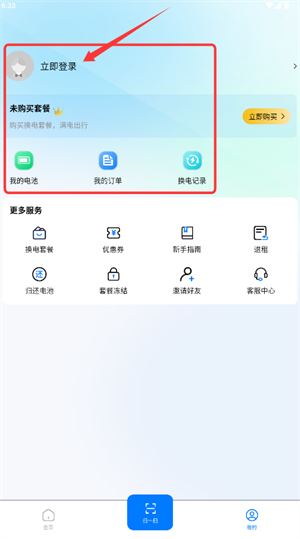 1、打開應(yīng)用后點擊“開啟換電之旅”,即可進入功能主頁面。