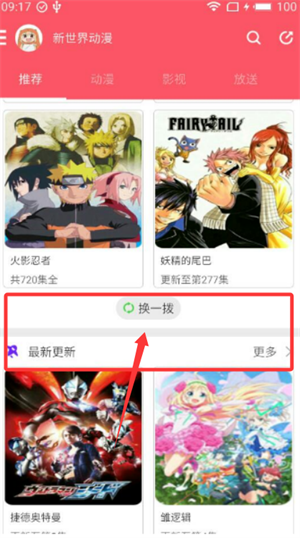 2、進(jìn)入主界面,能看到推薦的動漫作品,可點(diǎn)擊換一拔更換推薦內(nèi)容。