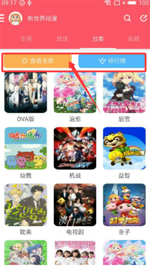 3、切換到分類頁面,有查看全部、排行榜等選項(xiàng),可查看全部分類或動漫排行榜。