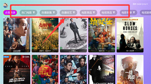 1、進入應(yīng)用后,在頂部分類欄選擇熱門電影或綜藝等感興趣板塊。