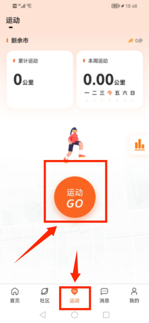 4、進入運動頁面點擊運動GO按鈕,即可開始記錄健身數(shù)據(jù)。
